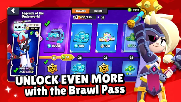 Ar Brawl Pass katra sezona atnes svaigu saturu, nodrošinot, ka tev vienmēr ir jauni mērķi. Uzvari 3v3 un 5v5 PvP cīņās, kā arī Battle Royale spēlēs, lai nopelnītu trofejas un virzītos augšup globālajos un lokālajos līderu sarakstos. Iegūsti dārgakmeņus, spēka punktus, piespraudes un Starr Drops, lai vēl vairāk uzlabotu savus Brawlerus. Pievienojies vai izveido savu klubu, lai dalītos padomos un cīnītos kopā ar citiem entuziastiem. Brawl Stars nepārtraukti attīstās ar jauniem Brawleriem, ādām, kartēm un spēles režīmiem, tostarp spēlētāju veidotām kartēm, kas piedāvā unikālus izaicinājumus. Šo aizraujošo MOBA piedzīvojumu piedāvā Supercell, Clash of Clans un Clash Royale veidotāji. Izbaudi nepārtrauktu jautrību un dinamiskas cīņas savā tempā.