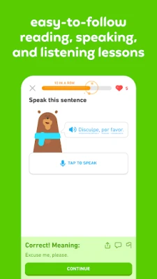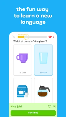 Duolingo ir jautra, bezmaksas lietotne valodu apguvei. Mācies vairāk nekā 40 valodas ar ātrām, mazām nodarbībām. Trenē runāšanu, lasīšanu, klausīšanos un rakstīšanu, lai veidotu vārdu krājumu un gramatikas prasmes. Tā ir efektīva izglītības platforma jaunu valodu apguvei.