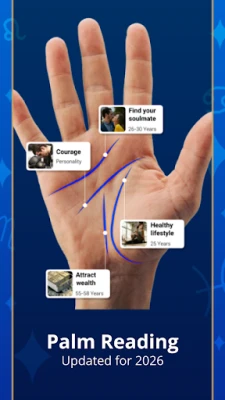 Šī lietotne ir jūsu personīgais ceļvedis ceļojumā uz sevis izzināšanu, analizējot katras plaukstas līniju nozīmi. Izpētiet Sirds līniju, lai atklātu mīlestības dzīves nianses, Dzīves līniju, kas vēsta par fizisko spēku un vitalitāti, vai Galvas līniju, kas atklāj jūsu prāta asumu. Tāpat varat uzzināt par Laulības līniju, Likteņa līniju, Veiksmes līniju un Ceļojuma līniju, kas sniegs ieskatu jūsu karjerā, panākumos, laulības dzīvē un nākotnes piedzīvojumos. Lietotne "Plaukstu lasīšana — zīlniece" apvieno hiromantijas gudrību ar astroloģijas elementiem, tostarp zodiaka zīmēm un to ietekmi, piedāvājot visaptverošu skatu uz jūsu likteni.