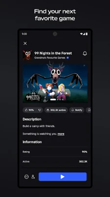 Roblox aicina spēlēt, radīt un izpētīt miljoniem unikālu pieredžu. Atklāj piedzīvojumus, lomu spēles, simulatorus vai vienkārši pavadi laiku ar draugiem. Iesaisties plašajā veidotāju kopienā, lai baudītu jaunas spēles katru dienu.